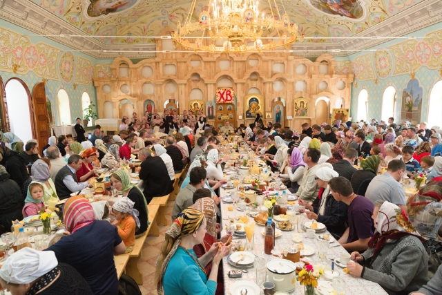 Общая трапеза. Николо-Сольбинский монастырь...Светский человек, приходя в обитель, надеется прикоснуться к благодати, получить утешение, конечно, поделиться своими трудностями и решить свои проблемы, люди хотят побеседовать, почувствовать, что о них кто-то позаботится, услышит...