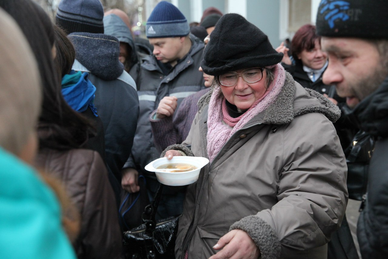 – Не в нашем случае. Мы сначала раздаем номерки, и неизвестно, кому какой номер достанется. Я прошу женщин стать с одной стороны, мужчин с другой и раздаю номера, по которым мы выдаем еду. Так что сам процесс раздачи проходит очень спокойно, никто никого не отталкивает и не лезет без очереди.