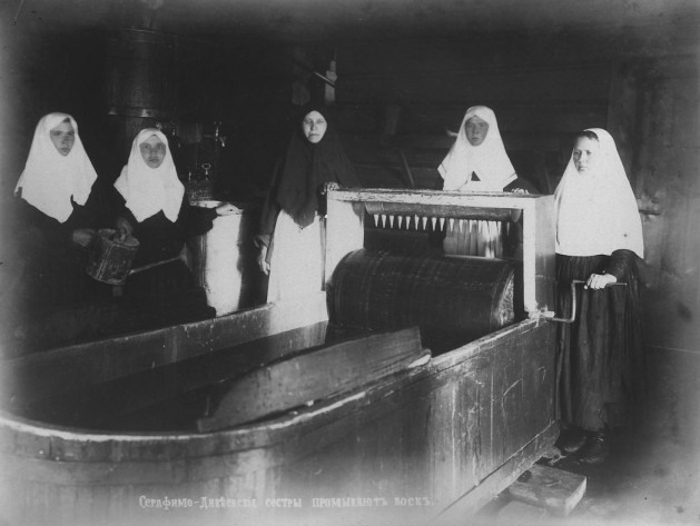 О том, как был организован труд в живописной мастерской, вспоминала монахиня Серафима (Булгакова): «Сестры жили по послушаниям. В корпусах обычно находились мастерские и жилые келии. Кто где работал, там и жил. В монастыре была большая живописная мастерская. В ней сестры не только писали иконы, но и заготовляли доски, золотили и чеканили. У каждой была своя специальность. В последнее время создали отдельную иконописную. Больше 80 сестер жили и работали в литографии. Сами работали на камнях (накалывали), по году подготовляли каждый камень. Печатали на моторе картины. Кроме того, переводили картины на белые грунтованные доски и затем их прописывали. Отливали из алебастра фигуры преподобного с медведем и раскрашивали. Делали всякие корзиночки, игрушки. Все это раздавали и продавали в монастырской лавке».