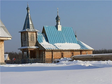 В центре скита находится деревянный храм в честь преподобного Сергия Радонежского, выстроенный в старинных архитектурных традициях об одной главе с двухъярусной шатровой звонницей. Наверху имеется 4 средних колокола и несколько колоколов поменьше.