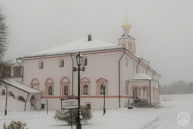 Против северо-западного угла соборного храма, находится теплый монастырский храм во имя Богоявления Господня, построенный по благословению и плану святейшего патриарха Никона в 1657-1658 г.
