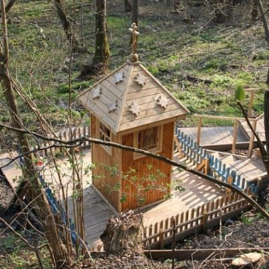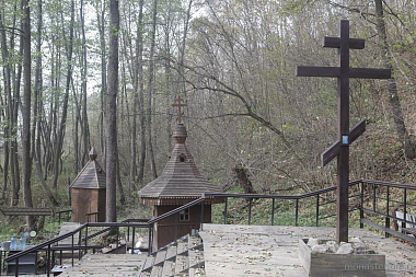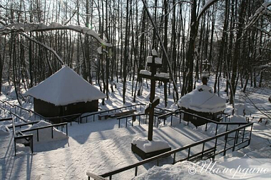 В прошлом веке на этом месте располагался дом-келья, в котором, приезжая в обитель, жил Старец.