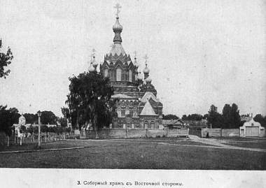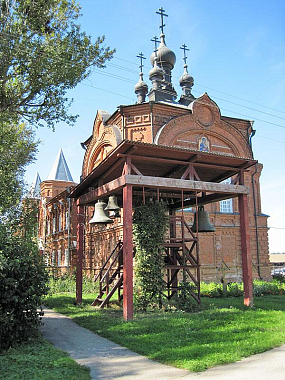 Величественный, 15-главый собор выполнен в «русском стиле» - с декоративными кокошниками, полуколоннами, щипцами, подзорами, узорчатыми наличниками арочных окон. На северном и южном фасаде – стилизованные крыльца с шатровыми завершениями с крестами. В 1902 году 11 / 24 октября Калужский Преосвященный Вениамин совершил его освящение. В годы лихолетья храм, как и весь монастырь, сильно пострадал: был осквернен и обезглавлен. С возрождением обители началось его восстановление.