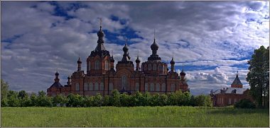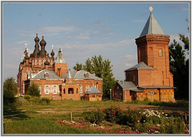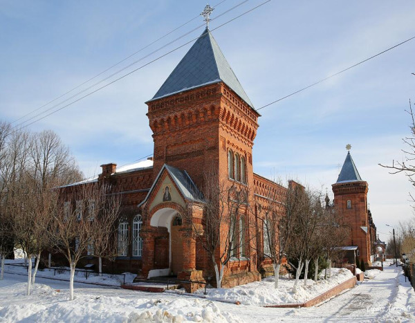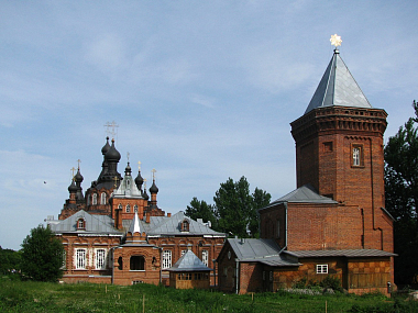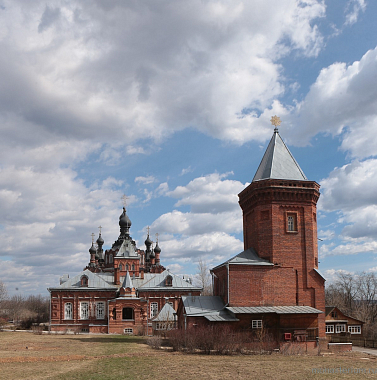 Главный храм обители в честь Казанской иконы Божией Матери построен по благословению преп. старца Амвросия. Проект храма изготовлен в мастерской архитектора С. В. Шервуда.