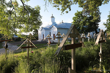 За храмом расположено старое монастырское кладбище, на котором нашли место своего упокоения несколько поколений шамординских сестер.