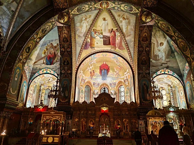 Вначале храм на лаврском подворье был маленький, деревянный, душный… Он с трудом вмещал молящихся, особенно в праздничные службы и в дни служения Владыки Иоанникия, настоятеля Киево-Печерской Лавры, приезжавшего на заседания Святейшего Синода. И вот, в 1894-1900 годах Киево-Печерское подворье было построено заново – с тем храмом Успения Пресвятой Богородицы, который сохранился до наших дней. Образы киевских святых и теперь украшают его своды.