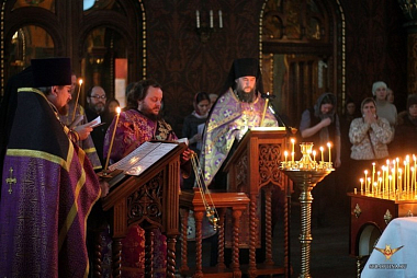 В будние дни Великого поста: утреннее богослужение начинается в 8:00 По будням после утреннего богослужения служится лития, в субботу — панихида.