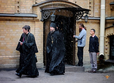 Преподаватели богословских дисциплин: благочинный Успенского подворья иеромонах Амвросий (Пархетов) и настоятель Успенского подворья иеромонах Даниил (Михалев).