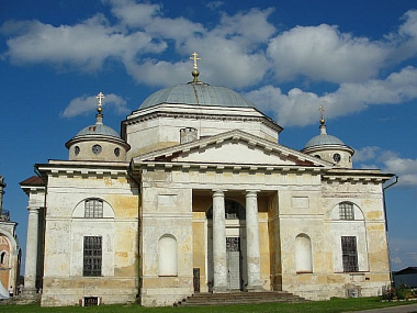 Борисоглебский собор, построен в 1796 г., с двумя приделами преподобных Ефрема Новоторжского и Аркадия.
