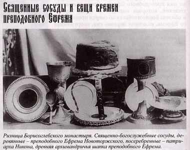Более 500 лет мощи преподобного Ефрема покоились в земле. В царствование Иоанна Грозного были обретены нетленные и благоуханные мощи преподобного и с тех пор, 24 июня совершается празднование открытия его чудодейственных мощей.