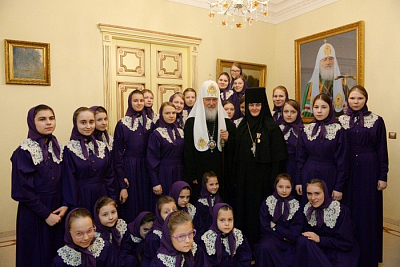 Также дети регулярно бывают на Патриарших службах, например, на Благовещение в Кремле. По традиции праздника вместе с воспитанницами приюта Святейший Патриарх Кирилл выпускает в небо голубей.