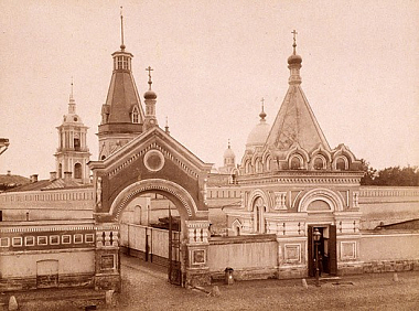 Покровский мужской монастырь был основан в 1635 году царем Михаилом Феодоровичем Романовым в память об отце, Патриархе Филарете, скончавшемся в праздник Покрова Пресвятой Богородицы. Обитель располагалась на месте так называемых Убогих (Божиих) домов, где хоронили нищих и застигнутых внезапной смертью. Главным храмом монастыря стала деревянная Покровская церковь, рядом с которой находился пятиглавый храм во имя Всех Святых. Несколько раз в год, в Семик (седьмой четверг после Пасхи) и в праздник Покрова, сюда совершались соборные крестные ходы из московских храмов и монастырей, для отправления общей панихиды и погребения усопших. В Пасхальные дни царь Алексей Михайлович и его сын Феодор посещали Покровскую обитель, по обычаю христосовались с братией и оставляли пожертвования в пользу монастыря и окормляемых им бедняков.
