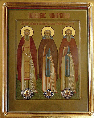 Урочище Радовое было передано администрацией Приморского района фермеру Мелешко. Силами своей семьи освоить 46 гектаров земли не удалось. Фермер решил отказаться от нее и передать Церкви. Божиим промыслом этот человек пришел на Архангельское подворье Соловецкого монастыря и рассказал, что на своей земле он строить ничего не будет, потому что в определенном месте над рощицей (в центре обители) он видел несколько раз в воздухе Пресвятую Богородицу с омофором в руках. Сказал, что у него возникает страх, когда он начинает какие-либо работы. Просил принять от него участок земли в несколько десятков гектаров. А на Архангельском подворье Соловецкого монастыря в 1995 году уже образовалась женская община. Настоятелем подворья был иеромонах Елеазар (Кондратьев).