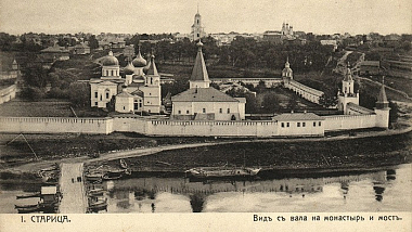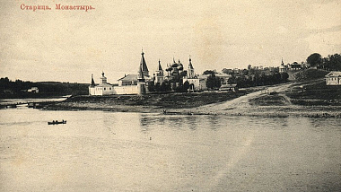 Старицкая обитель была основана не на том месте, где распо­лагается ныне (почти на самом берегу реки Волги), а выше – в глухом лесу, где два инока поставили для себя келью. Постепенно число братии множилось, место вокруг иноков обживали и другие монахи – с мо­литвою и без празднословия. Так образовался монастырь, а вокруг мо­настыря – селение.