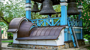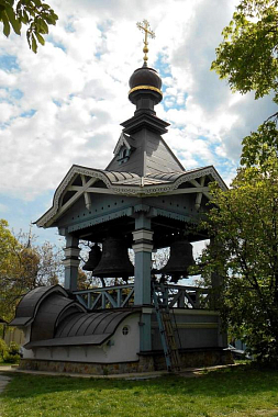В мае 1896 г. были получены из Москвы отлитый на колокольном заводе Самгина колокол весом 1150 пудов (на то время самый большой в Киеве) и несколько мелких по 57 пудов, для чего выстроена временная деревянная колокольня. С первых дней основания Свято-Троицкой обители отец Иона мечтал о большой каменной колокольне. Новые колокола и были для нее предназначены.