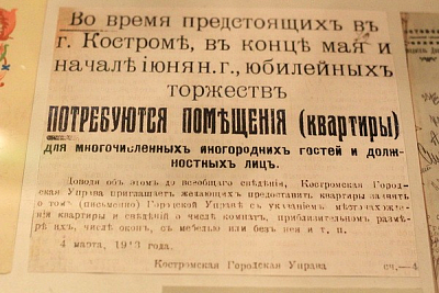 С 1863 по 1912 годы Ипатьевская обитель принимала многочисленных посетителей в Музее Дома Романовых в «Царских чертогах» (Палатах бояр Романовых). Музей напрямую финансировался из государственных средств. В его экспозиции были представлены предметы, связанные с пребыванием в Ипатьевском монастыре царствующих особ, в том числе, реликвии основателя романовской династии – серебряный ковш и посох, присланные в обитель императором Николаем I.