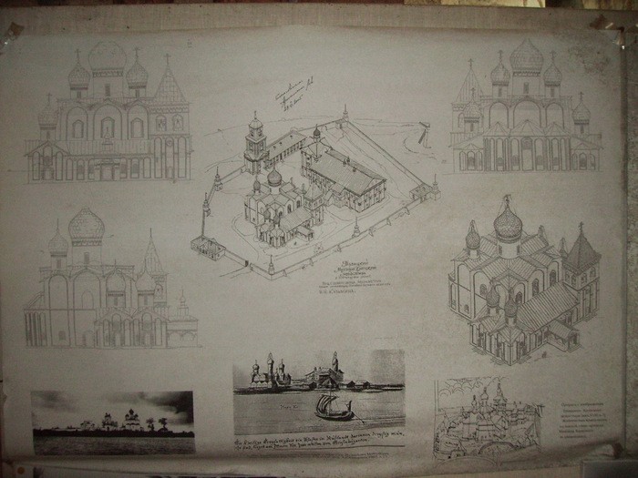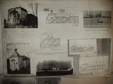 Документальные источники, изобразительный материал, а также натурные данные позволяют выделить несколько основных этапов перестроек памятника. Первый этап можно отнести к 1630-м гг. В 1580 г. монастырь был захвачен войсками Стефана Батория, вплотную приблизившегося к Новгороду, а в 1611 г. - отрядом шведского военачальника Самуила Коброна. И хотя в Описи Новгорода 1617 г. говорится только о разграблении монастырской ризницы шведами, можно предполагать, что и храмы пострадали в это смутное тяжелое время. Известно, что в 1632 г. игумен Никодим с братиею обратились с челобитной к царю Михаилу Федоровичу, после чего из царской казны были отпущены на возобновление обители. Рисунок члена австрийского посольства Мейерберга, сделанный в 1661-1662 гг., зафиксировал, хотя и условно, архитектурный облик Никольской церкви с трапезной после перестройки 1630-х гг. Монастырь изображен с юго-запада, со стороны реки Веряжи. Оба фасада храма развернуты в одной плоскости, завершены восьмикратной кровли и одном главой. Трапезная имеет двускатное перекрытие, при этом коньковый брус размещен по оси восток-запад, что соответствует действительности. К 1630-м гг. предположительно можно отнести устройство восьмискатного завершения церкви. Для новгородской архитектуры XVI века характерно палаточное завершение, xoтя не исключено и восьмискатное (церкви Благовещения на Торгу, Сретения в Антониевом монастыре). Сравнение рисунка Мейерберга с изображением монастыря в приделе Михаила Клопского позволяет предположить, что во второй половине XVII века была осуществлена следующая перестройка церкви с трапезной палатой. В отличие от рисунка Мейерберга, настенное изображение более детально и реалистично. Храм представлен с четырех-скатным завершением. На фасадах четко показаны горизонтальные тяги и люнеты, расположенные по три на каждом фасаде в одном уровне над верхней горизонтальной тягой. Подобное расположение люнет предполагает, как наиболее вероятное, первоначальное палаточное завершение фасадов. В отличие от рисунка Мейерберга, трапезная представлена как протяженная на 10 оконных осей постройка К северному фасаду примыкает двухъярусная паперть с крыльцом, но по высоте равная трапезной. Первый ярус ее решен как открытая галерея, верхний - с большими проемами.