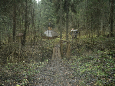На его верхней площадке была выстроена восьмиугольная деревянная часовня. Второй насыпной холм, расположенный в сотне метров восточнее монастыря, послужил основанием для скита. На вершине холма в 1867 – 1869 годах игумен выстроил двухэтажную церковь Воскресения Христова, сохранившуюся до наших дней .В 1875 году перестраивается церковь преподобного Павла.