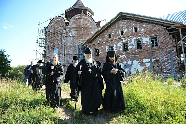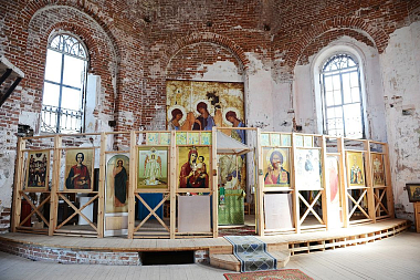 В 1650 была построена и освящена каменная Троицкая церковь с приделами в честь иконы Божией Матери «Знамение» и преподобного Михаила Малеина, недалекоот храма построены кельи.