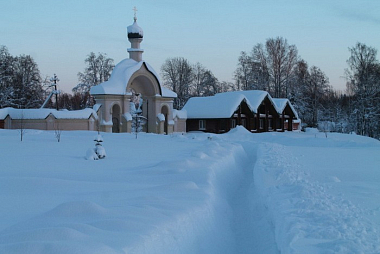Место это поразило иноков своей красотой и находилось в те времена в ведении Новгородской епархии. По благословению Новгородского архиепископа Пимена, преподобный поставил часовню в честь Пресвятой Троицы и восемь келий, и собралось к нему в пустынь 10 братий.
