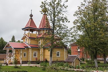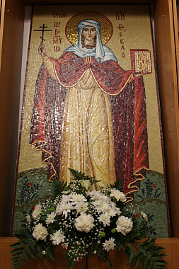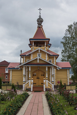 Храм, освященный в честь святой равноапостольной первомученицы Феклы, покровительницы нашего монастыря. Это первый и единственный храм в честь святой Феклы в нашей стране, в связи с чем был выбран и материал для строительства – дерево, и стиль - как дар первомученице от русской души.