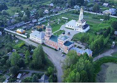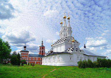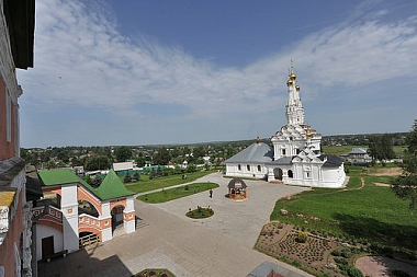 В XVII столетии на территории монастыря возводится соборный трехшатровый храм во имя Смоленской иконы Божией Матери Одигитрии. Общепринятой датой постройки храма считаются 1635-1638 гг. Однако, изучение архивных источников и архитектурных особенностей храма сегодня позволяет весьма аргументированно предполагать, что храм Одигитрии, представляющий собой яркий и совершенный образец развитой фазы русского узорочья и завершающей стадии стиля Алексея Михайловича был возведен в более позднее время – 1650-70-е гг.