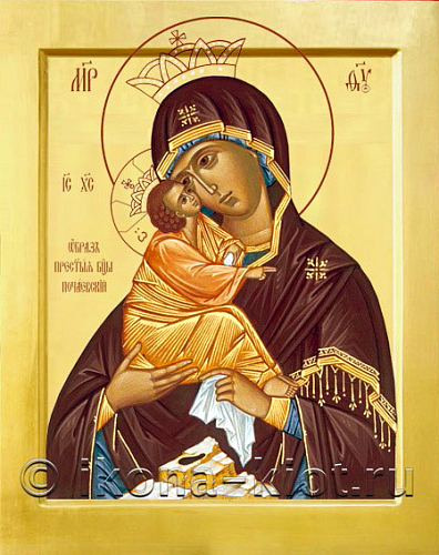 Пред святою Твоею иконою, Владычице,/ молящиися исцелений сподобляются,/ веры истинныя познание приемлют/ и агарянская нашествия отражают./ Темже и нам, к Тебе припадающим,/ грехов оставление испроси,/ помыслы благочестия сердца наша просвети/ и к Сыну Твоему молитву вознеси// о спасении душ наших.