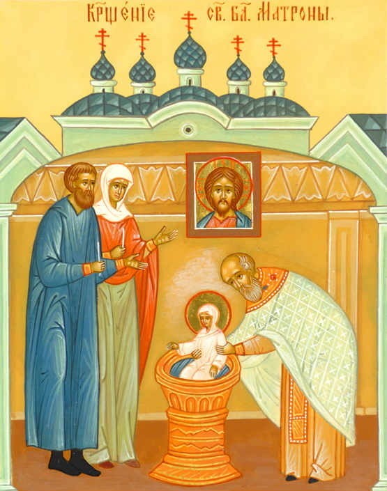 При Крещении девочка была названа Матроной в честь преподобной Матроны Константинопольской, греческой подвижницы V века, память которой празднуется 9 (22) ноября.