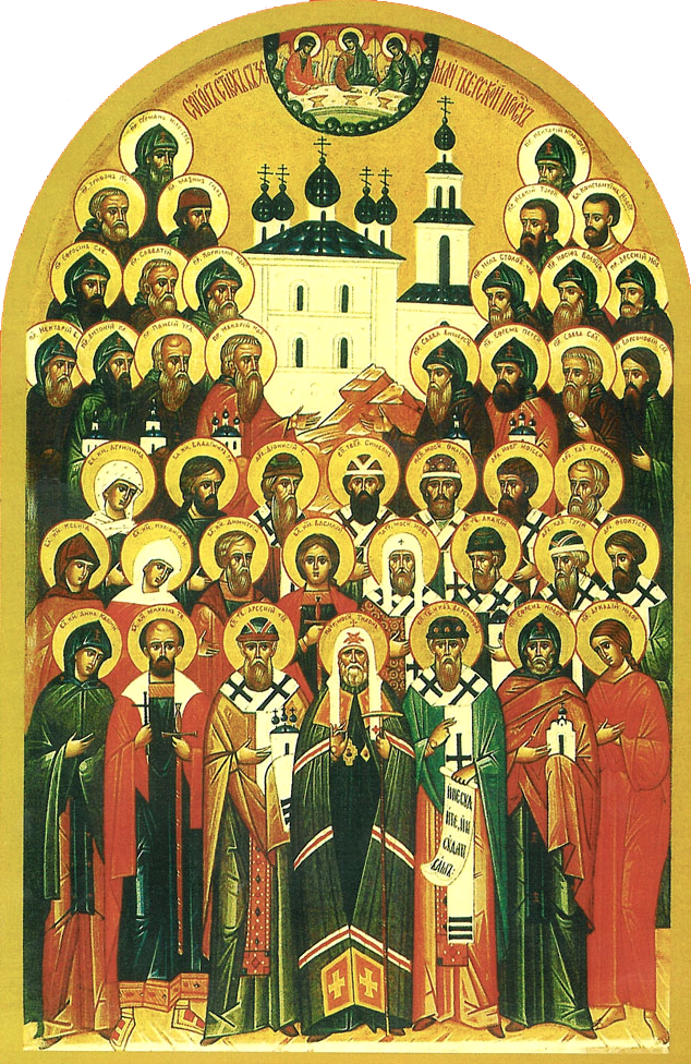В сонме святых, подвизавшихся в пределах Тверской епархии, более 40 угодников Божиих предсоветского времени и более 200 новомучеников XX века. Среди них некоторые не были наставниками и учителями тверской паствы, но, как отмечал патриарх Пимен в поздравительном послании к архиепископу Алексию, они «были причастны к ней либо по происхождению, либо по кончине».