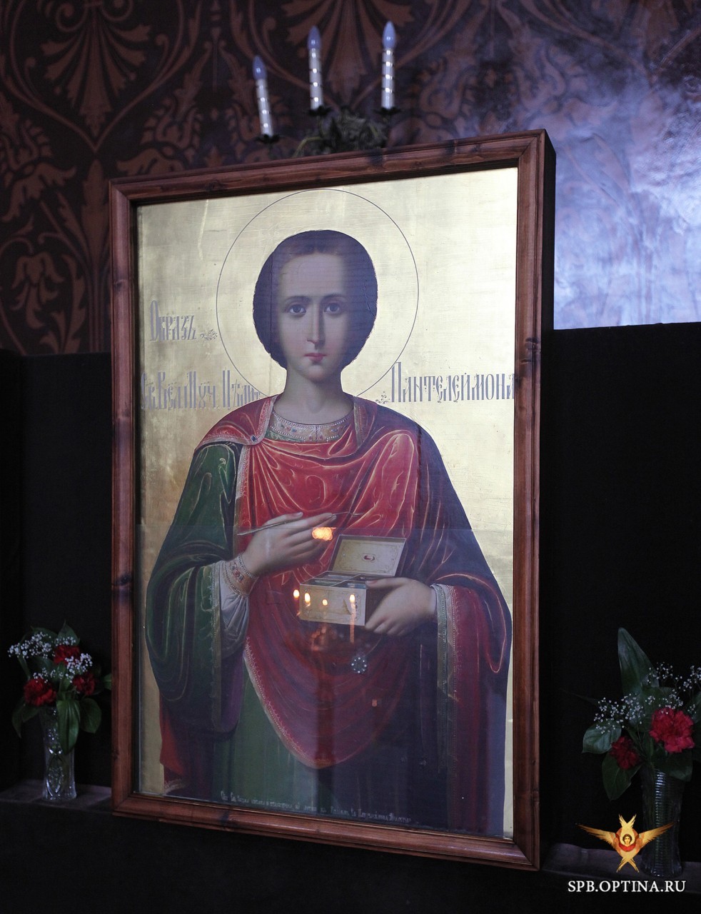 Икона афонского письма с частицей мощей целителя Пантелеимона .