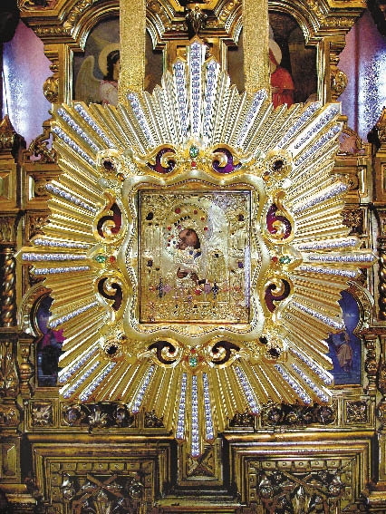 Радуйся, православныя люди иконою Твоею утешившая; радуйся, от всех стран молящияся люди во обитель Почаевскую призывающая.