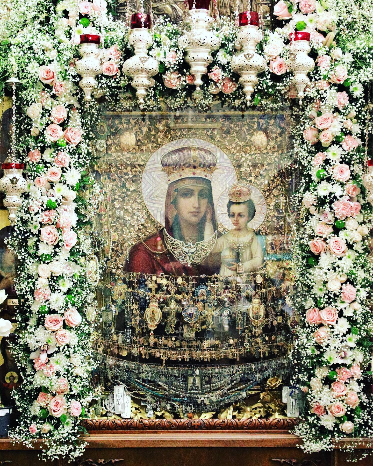 Благодати Божия Святое и Непорочное жилище, Мати Господа Вышних сил, не возгнушайся нас грешных и недостойных, воспевающих милости от всечестныя иконы Твоея нам явленныя, и Твоим невечерним сиянием озари наша темныя души, приводящи к Свету Трисолнечнаго Божества; в Православии укрепи нас, Всеблагая, и сподоби до конечнаго воздыхания нашего пети немолчную песнь Вседержителю: АЛЛИЛУИА.