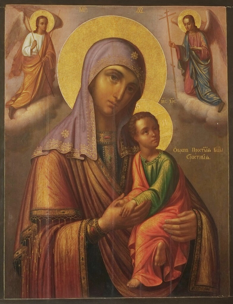 Икона XIX века, пожертвована в 2012 году. Жертвователи посчитали, что эта икона Божией Матери с изображением орудий страданий Спасителя должна пребывать в Голгофо-Распятском скиту. Находится в Успенском приделе храма Распятия Господня на вершине горы Голгофы.