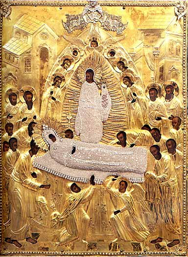 В неболь­шом го­ро­де Пе­че­ры, к за­па­ду от Пско­ва, рас­по­ло­жен мо­на­стырь, так­же на­зы­ва­е­мый Пе­чер­ским. Как го­род, так и мо­на­стырь по­лу­чи­ли свое на­зва­ние от вы­руб­лен­ной неиз­вест­но ко­гда и кем в го­ре древ­ней пе­ще­ры. Она слу­чай­но бы­ла най­де­на в XV ве­ке од­ним кре­стья­ни­ном, ру­бив­шим дро­ва на го­ре. Через неко­то­рое вре­мя к го­ре при­шел свя­щен­ник по име­ни Иоанн и устро­ил в ней цер­ковь. С бла­го­сло­ве­ния Нов­го­род­ско­го ар­хи­епи­ско­па Фе­о­фи­ла эта цер­ковь бы­ла освя­ще­на во имя Успе­ния Бо­жи­ей Ма­те­ри, по­сле че­го от глав­ной хра­мо­вой ико­ны по­лу­чи­ла ис­це­ле­ние од­на жен­щи­на. Ико­на эта с тех пор ста­ла из­вест­на под име­нем «Успе­ния» Пско­во-Пе­чер­ской. Пер­вое чу­дес­ное ис­це­ле­ние от Пско­во-Пе­чер­ско­го об­ра­за про­изо­шло в 1473 го­ду. Свя­щен­ник Иоанн вско­ре при­нял мо­на­ше­ство с име­нем Ио­ны и по­ло­жил ос­но­ва­ние Пе­чер­ской оби­те­ли, бра­тия ко­то­рой вна­ча­ле со­сто­я­ла все­го толь­ко из двух или трех стар­цев-по­движ­ни­ков.