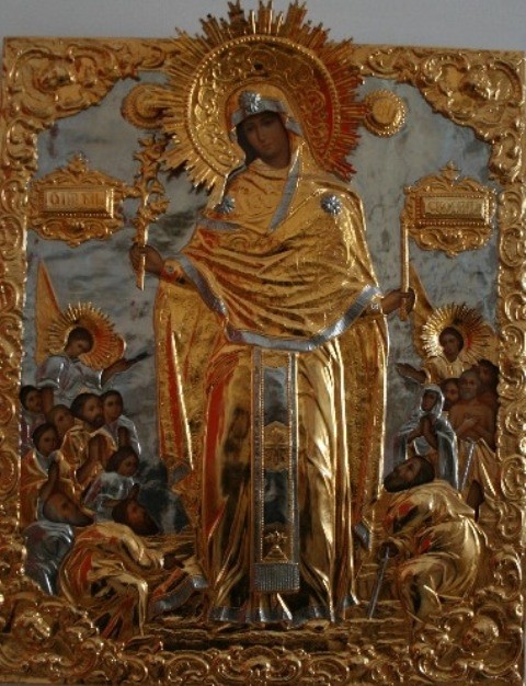 — Есть в хра­ме Пре­об­ра­же­ния Сы­на Мо­е­го об­раз Мой, име­ну­е­мый «Всех скор­бя­щих Ра­дость». Сто­ит он на ле­вой сто­роне в тра­пе­зе, где обык­но­вен­но ста­но­вят­ся жен­щи­ны. При­зо­ви к се­бе из этой церк­ви свя­щен­ни­ка с этим об­ра­зом, и ко­гда он от­слу­жит мо­ле­бен с во­до­свя­ти­ем, ты по­лу­чишь ис­це­ле­ние.
