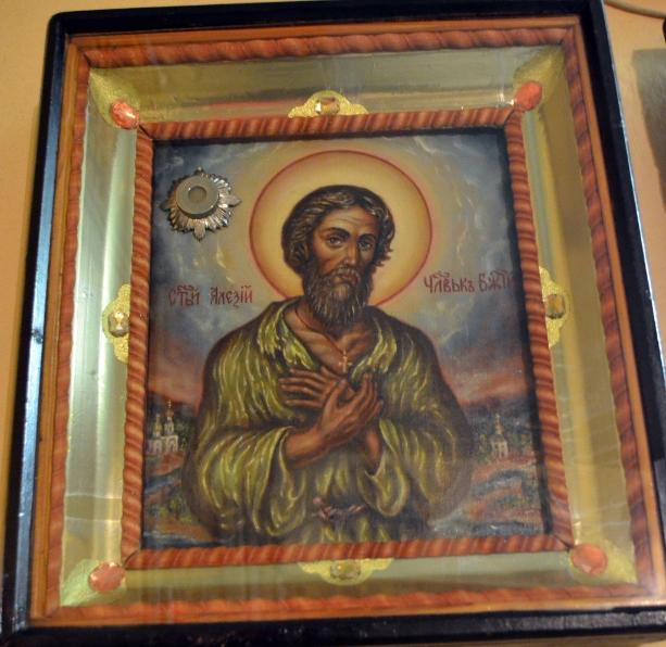 Икона преподобного Алексия, человека Божия с частицей мощей.