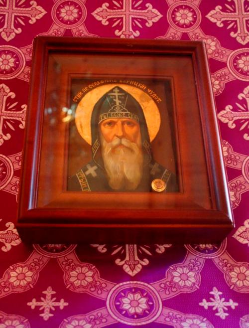 Икона преподобного Серафима Вырицкого с частицей камня, на котором молился святой