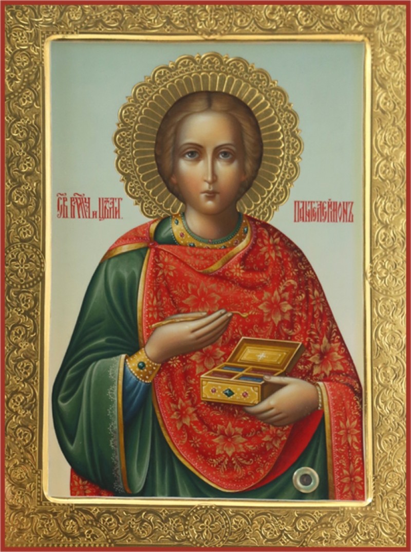 Икона приобретена для монастыря в 2013 году, на нее был установлен мощевик с частицей мощей святого великомученика Пантелеимона.