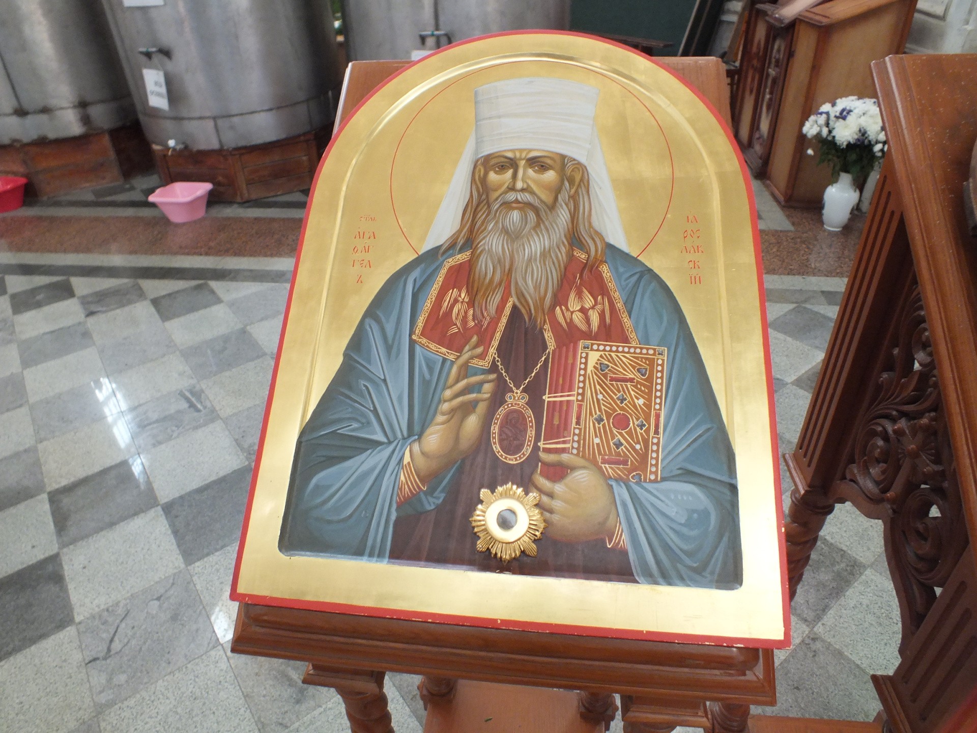 Икона свт. Агафангела исповедника, митрополита Ярославского, с частицей мощей.