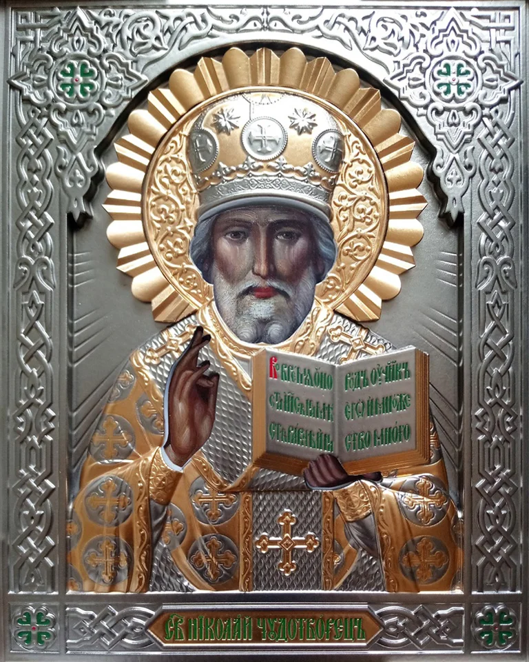 Икона написана на доске как «подокладная» (видны только лик святого угодника Божия и благословляющая десница) и когда-то была покрыта ризой — символом благодатного невещественного света, в котором пребывает святой. Сейчас почитаемая икона немного поновлена и украшена новой, недавно изготовленной для нее ризой.