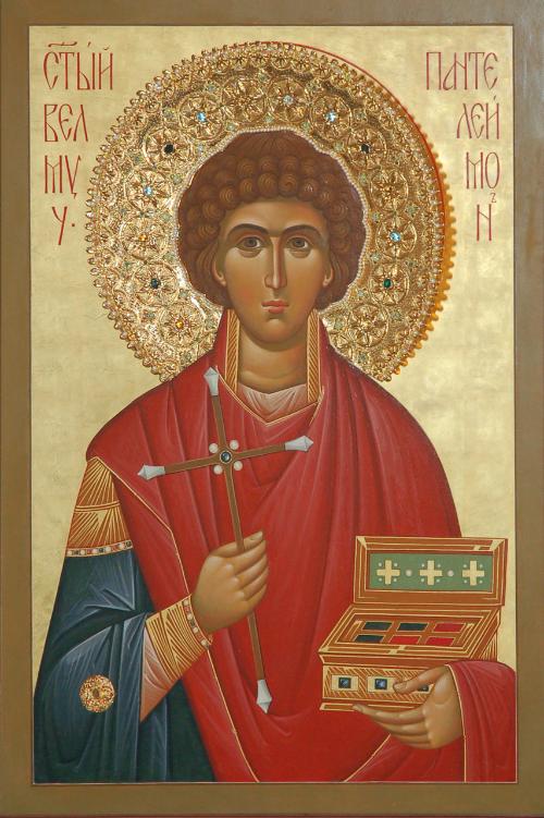 Икона великомученика и целителя Пантелеимона с частицей мощей.
