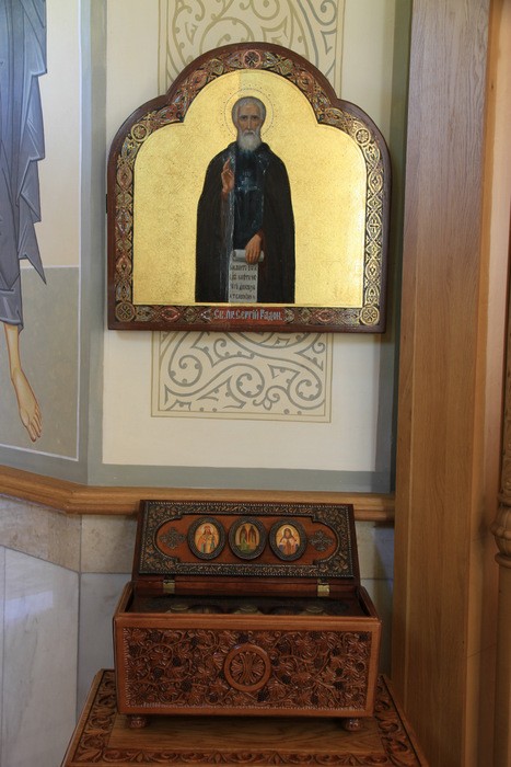 Ковчег с частицами мощей святителя Митрофана Воронежского, святителя Тихона Задонского, преподобных Кирилла и Марии, родители прп. Сергия Радонежского.