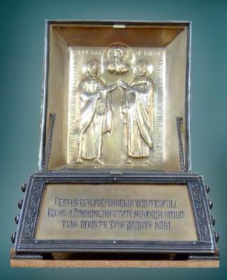 Ковчег с частицами мощей святых мучеников–бессребреников Космы и Дамиана