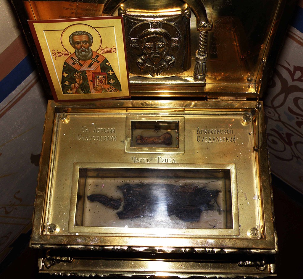 Частицы мощей и гроба свт. Арсения Элассонского, архиепископа Суздальского были переданы в дар обители сотрудниками Владимиро-Суздальского музея-заповедника после их обретения в 2005 году. Ковчег современный (латунь, литье, стекло)