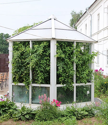 В 2003 г. мы с Игуменом Владимиром высадили куст в грунт.На зиму я устанавливал над ним теплицу с подогревом, которую приходилось ежегодно надстраивать, т.к. Куст стал очень мощно расти.