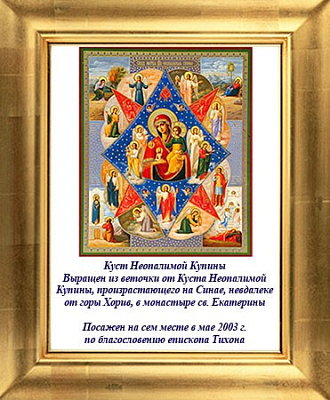 Летом 2001 г. я приехал в Видное к отцу Тихону, в то время настоятелю монастыря, и рассказал ему о Кусте и о своем обете посадить Куст в монастыре.