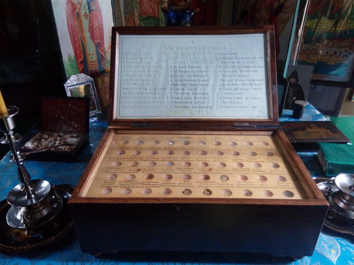 Мощевик с частичками мощей святых угодников Божиих и частичками святынь.