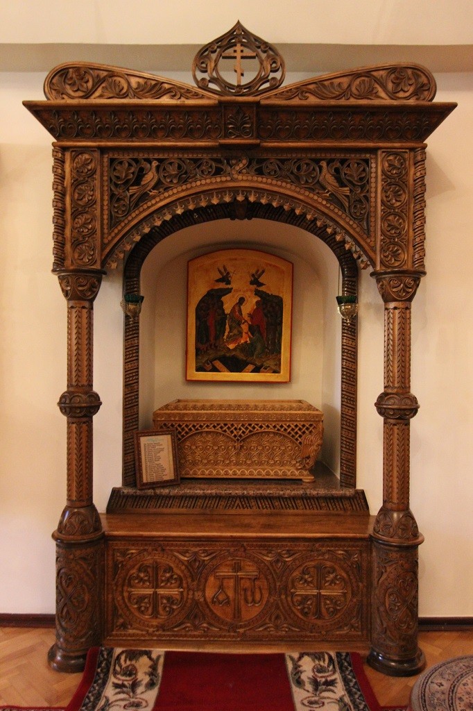 Мощевик с частицами мощей в приделе Усекновения главы Иоанна Предтечи храма Успения Пресвятой Богородицы