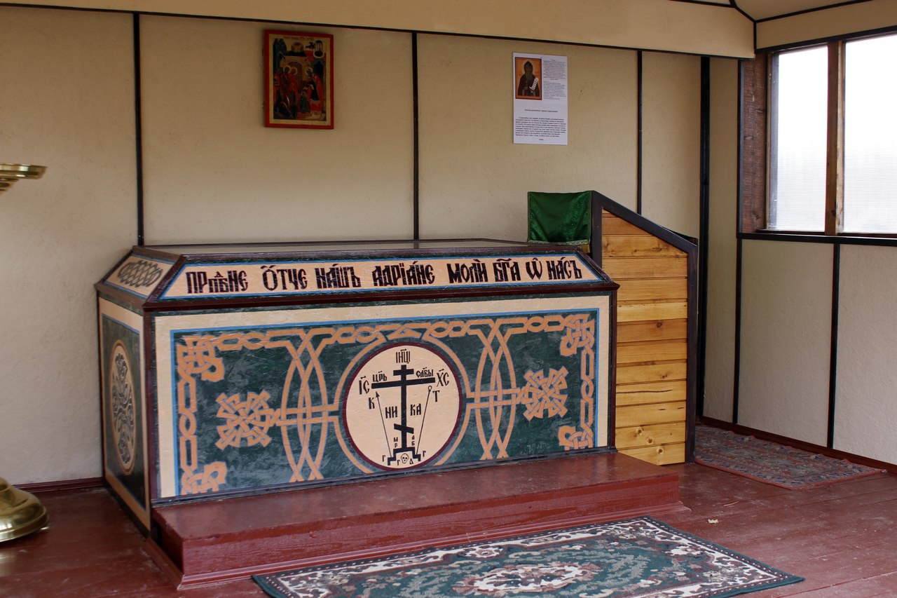 Мощи преподобного Адриана Ондрусовского под спудом.