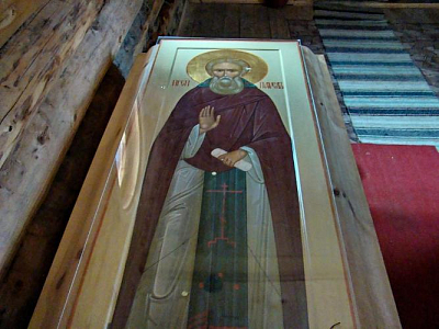 Мощи преподобного Павла Обнорского под спудом в часовне в его честь